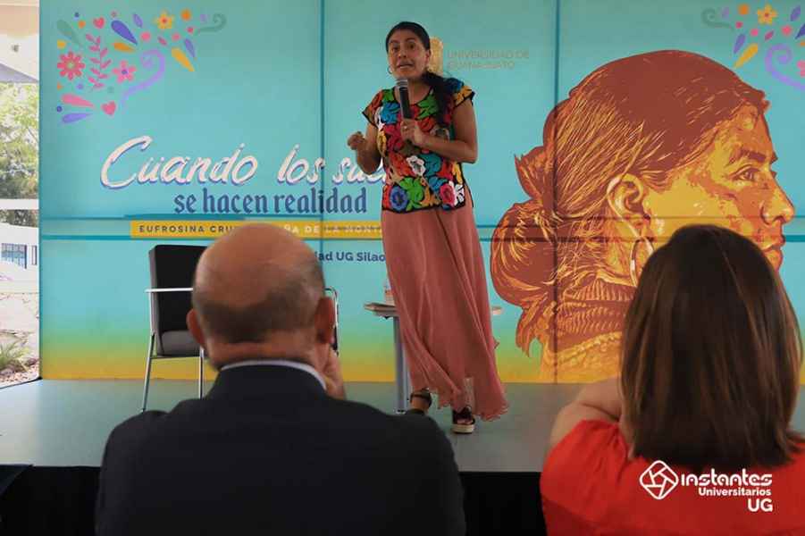 En #InstantesUG, así se vivió la charla "Cuando los sueños se hacen realidad: Eufrosina Cruz, la Niña de la Montaña", donde platicó acerca de su obra, su experiencia de vida y trayectoria en Univerciudad UG Silao.