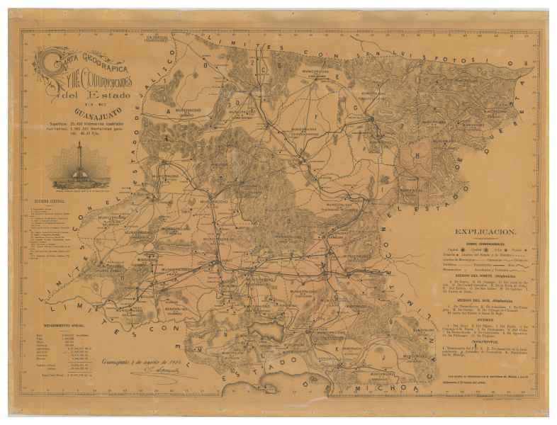 Contenido: Vistas de la ciudad de Guanajuato, edificios públicos y religiosos, plazuelas, calles y callejones, comercio y vida cotidiana, minerales, minas y haciendas de minas. Postales de otras ciudades. Retratos de personajes y gobernadores guanajuatenses.