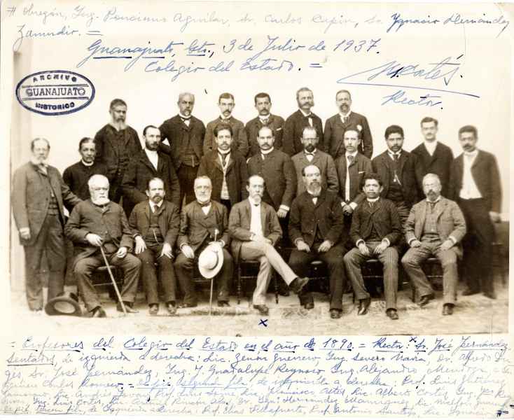 Contenido: Fotografías de Agustín Lanuza (1870-1936) -abogado, historiador, poeta y prosista guanajuatense, egresado del Colegio del Estado de Guanajuato-. Imágenes del patio de estudios del Colegio del Estado, actual patio del Departamento de Derecho de la Universidad de Guanajuato.