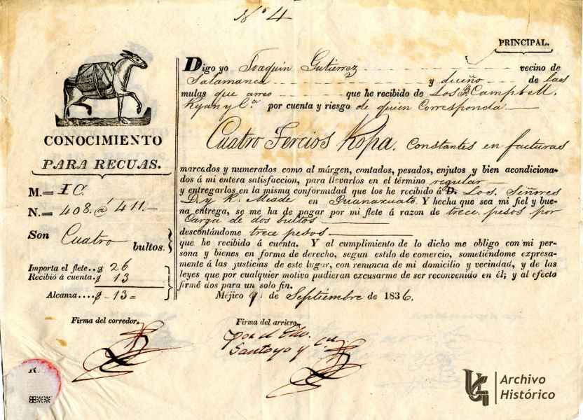José Ramón Tomás Alcázar Castañeda (1843-1914), importante personaje de la élite guanajuatense, comerciante, banquero y gran coleccionista de antigüedades. En su pequeña colección documental podemos encontrar documentos relativos a propiedades inmuebles de la región y del centro de México, juicios y avalúos sobre dichos bienes, testamentos y procesos judiciales seguidos en torno a las propiedades, correspondencia emitida y recibida, inventarios de biblioteca personal, artículos sobre los avances en tecnología minera de la época, invitaciones a eventos sociales, participaciones, esquelas mortuorias, menús de comidas ofrecidas en distintos eventos de sociedad, programas de conciertos, bailes, fiestas, corridas de toros, obras teatrales; recortes de periódicos de la época, caricaturas políticas, mapas, boletos de rifas, de ferrocarril; dibujos, mapas, pasaportes familiares, tarjetas postales europeas y norteamericanas, fotografías familiares, partituras de música sacra, entre otros elementos.