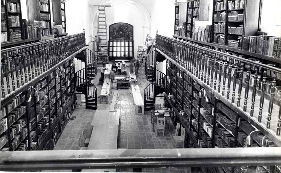 Finalmente, el 17 de septiembre de 1962, las autoridades universitarias determinan su traslado a un espacio adaptado exprofeso, siendo la sala hospital del antiguo convento de los frailes betlemitas el lugar elegido. La disposición en forma de cruz latina, parece indicar que en algún momento también podría haber fungido como capilla. Contiene un universo de 30 mil 406 registros o títulos y aproximadamente 60 mil volúmenes.