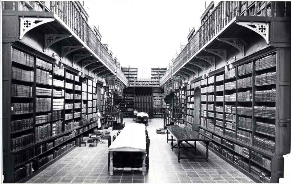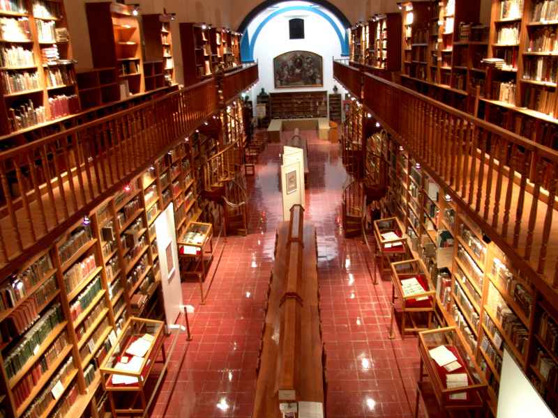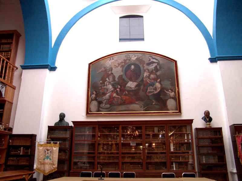 La biblioteca permaneció 130 años en la planta baja del inmueble que albergó al centro de enseñanza desde su apertura. En el siglo XIX, tras la independencia nacional y la reforma liberal, el acervo experimentaría un crecimiento exponencial y sistemático que motivó su traslado a la capilla del entonces denominado Colegio del Estado de Guanajuato.