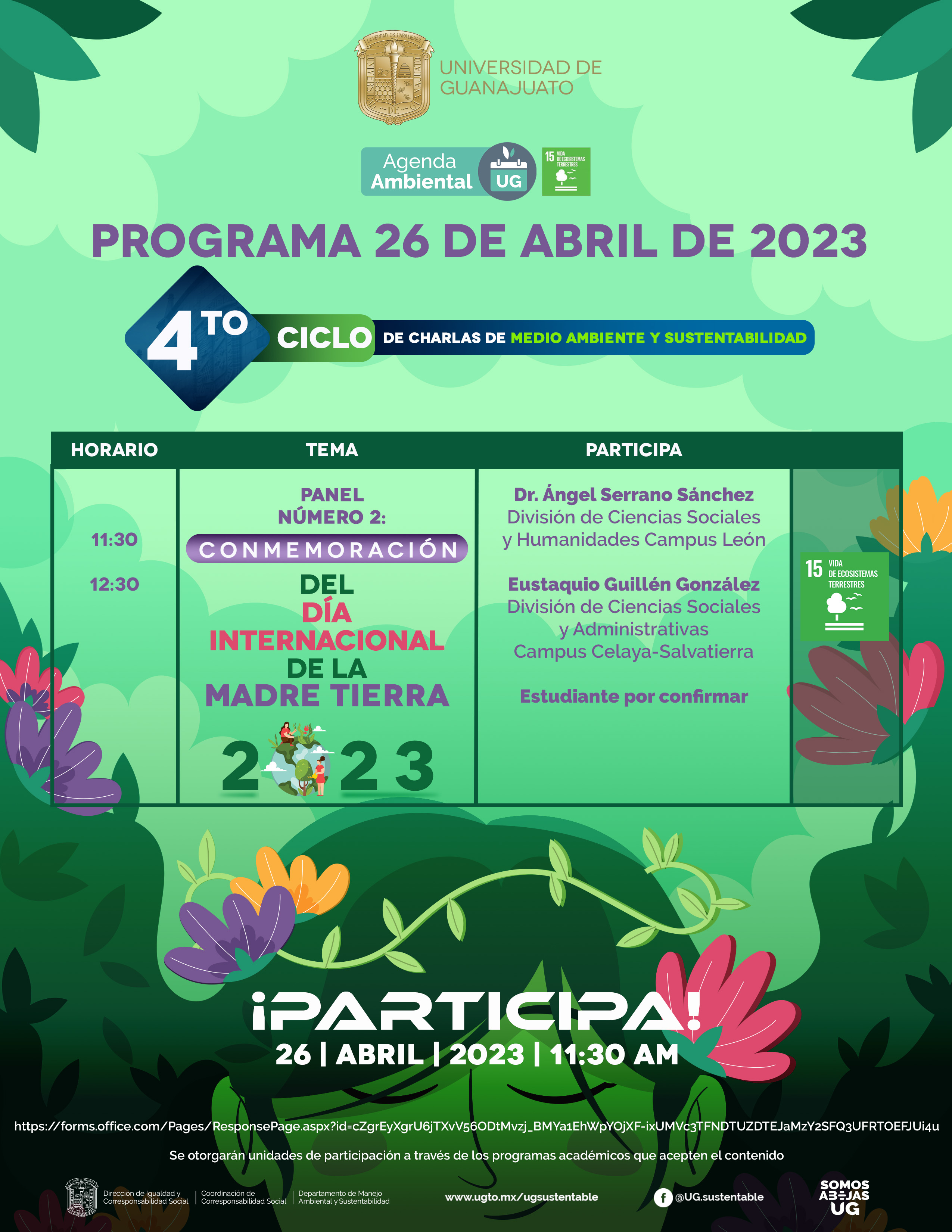 Revisa el programa completo en: www.ugto.mx/ugsustentable y en www.facebook.com/UG.sustentable, puedes inscribirte en: