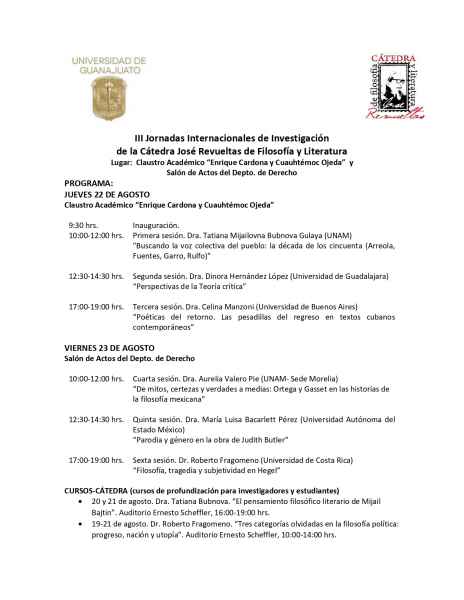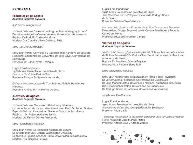II Jornadas Internacionales de Filosofía y Literatura de la Cátedra José Revueltas, 23 al 25 de agosto de 2017