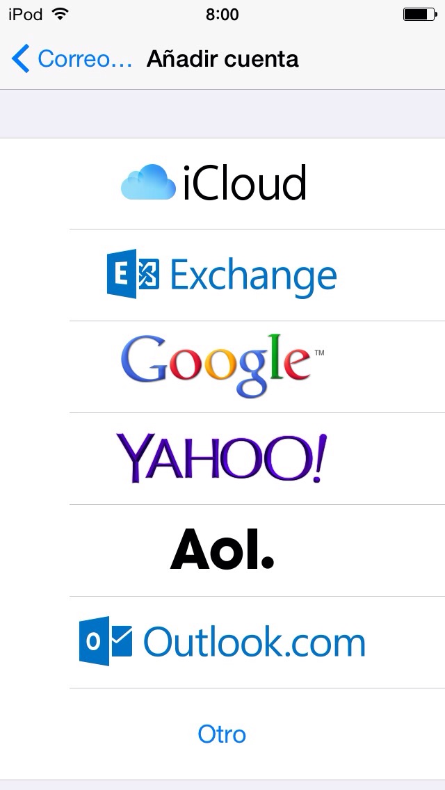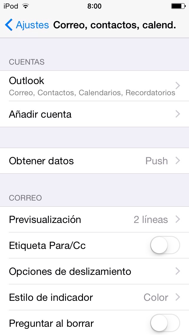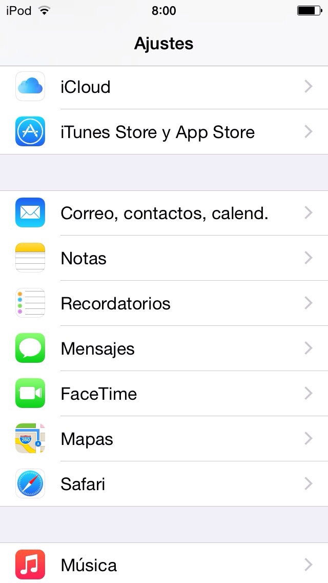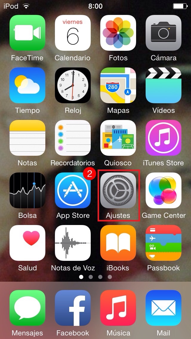 Salimos de "Ajustes" y no dirigimos a "Mail":
