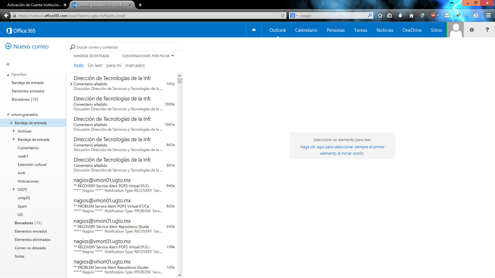 Con esto finaliza la configuración y puede revisar su correo institucional directamente en su dispositivo: