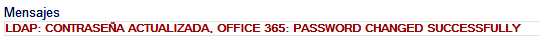 3.- Recibirá el siguiente mensaje que indica el cambio correcto de contraseña en su cuenta Office 365: