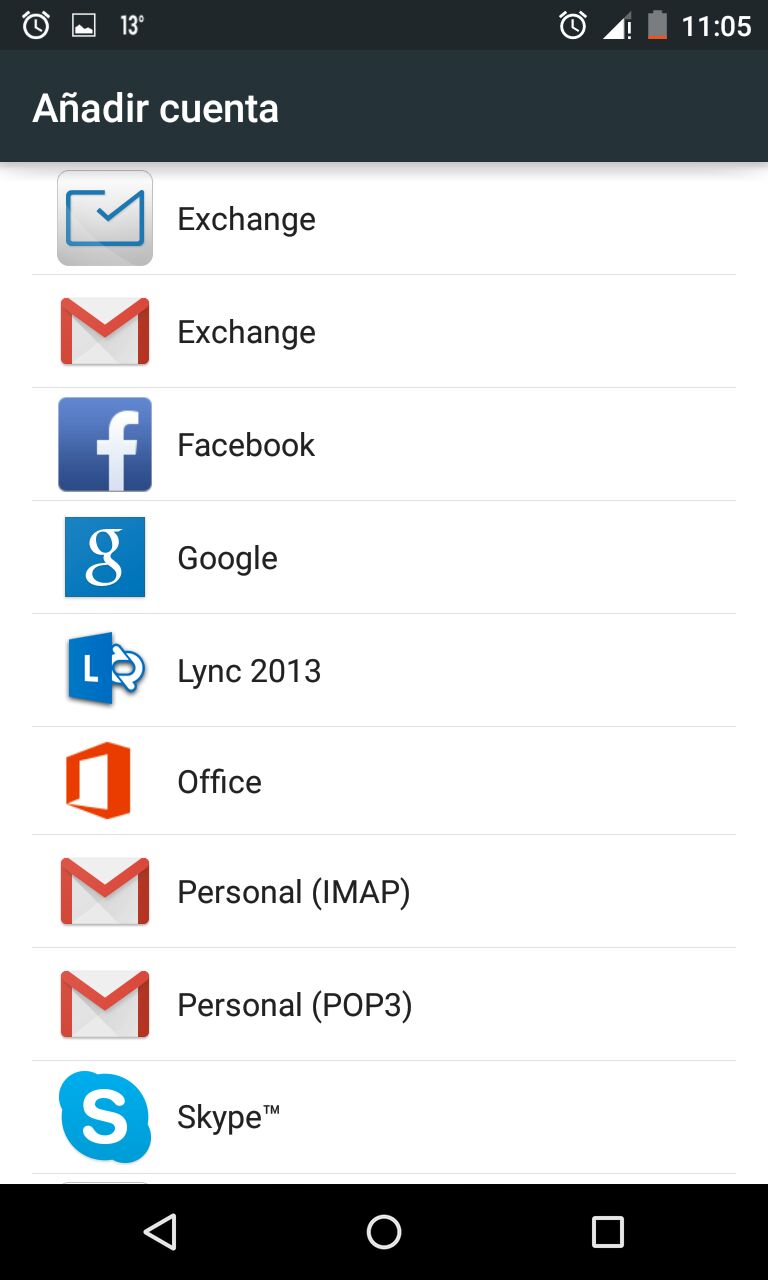 Dentro nos dirigimos a "Correo,contactos,calend.":