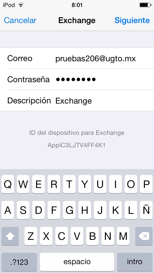**NOTA: la Descripción es el nombre con la cual se identificara en la aplicación MAil en el dispositivo.