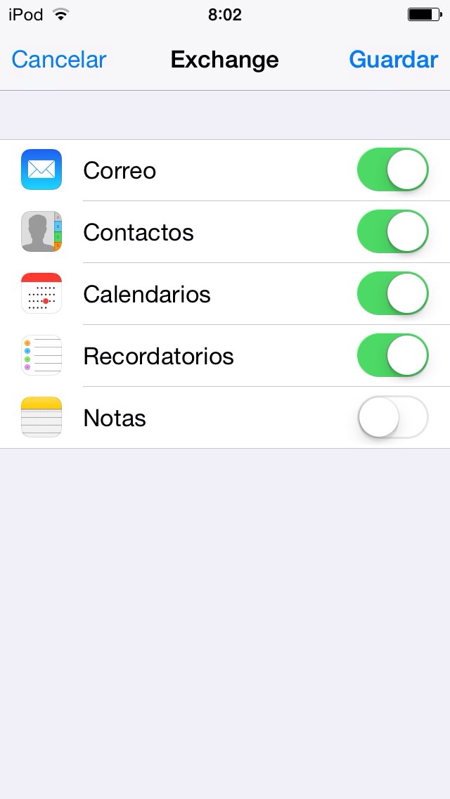 Activamos las opciones que deseamos que se sincronicen con la cuenta de correo y le damos clic en "Guardar":