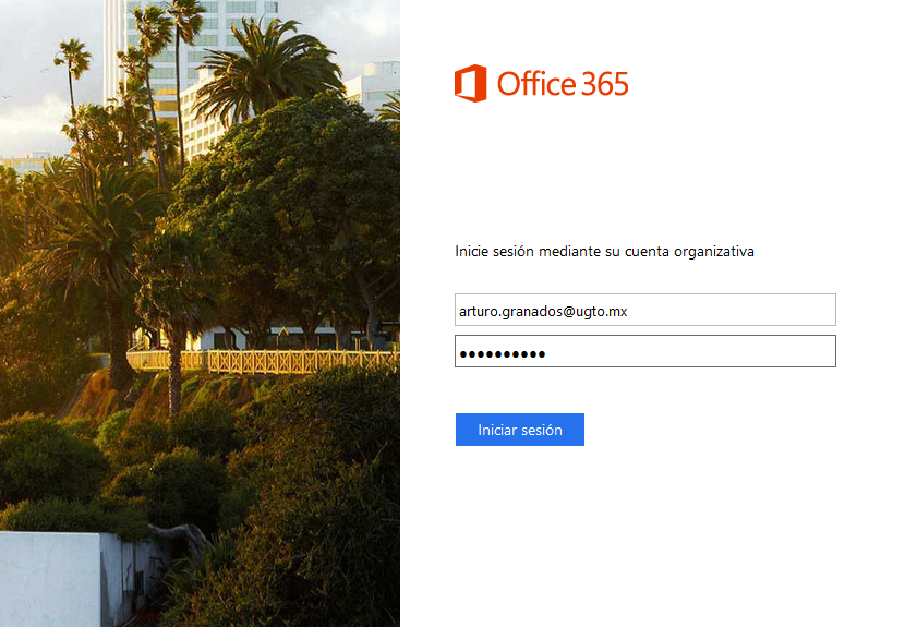 En la siguiente pantalla capturaremos nuestra cuenta de correo institucional con dominio @archivado.ugto.mx y nuestra contraseña actual tal como se muestra en la imagen: