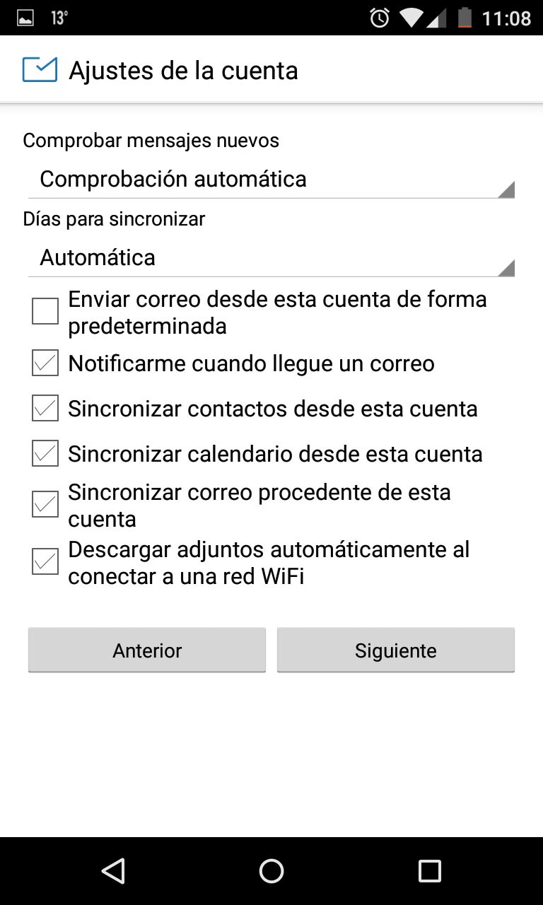 Activé las opciones que desee que se sincronicen con su cuenta de correo institucional y de clic en "Siguiente":