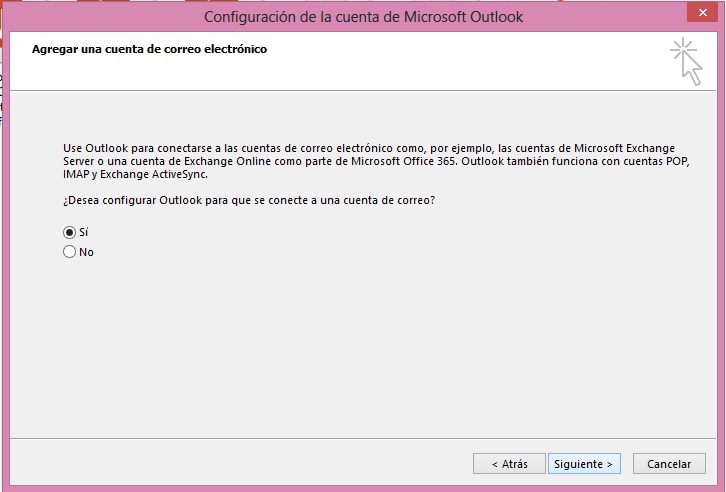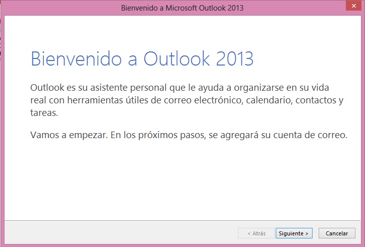 Al ingresar por primera vez a Outlook 2013 nos aparecerá la siguiente imagen: