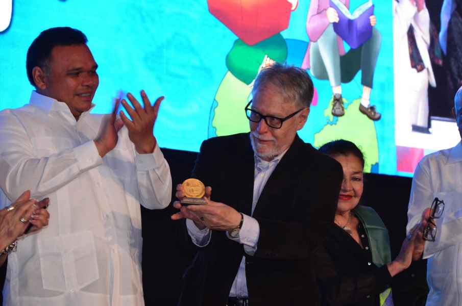 El acto inaugural de la FILEY fue el marco para la entrega del premio “José Emilio Pacheco” al escritor David Huerta, por su excelente contribución a las letras mexicanas en poesía, ensayo y artículo periodístico.