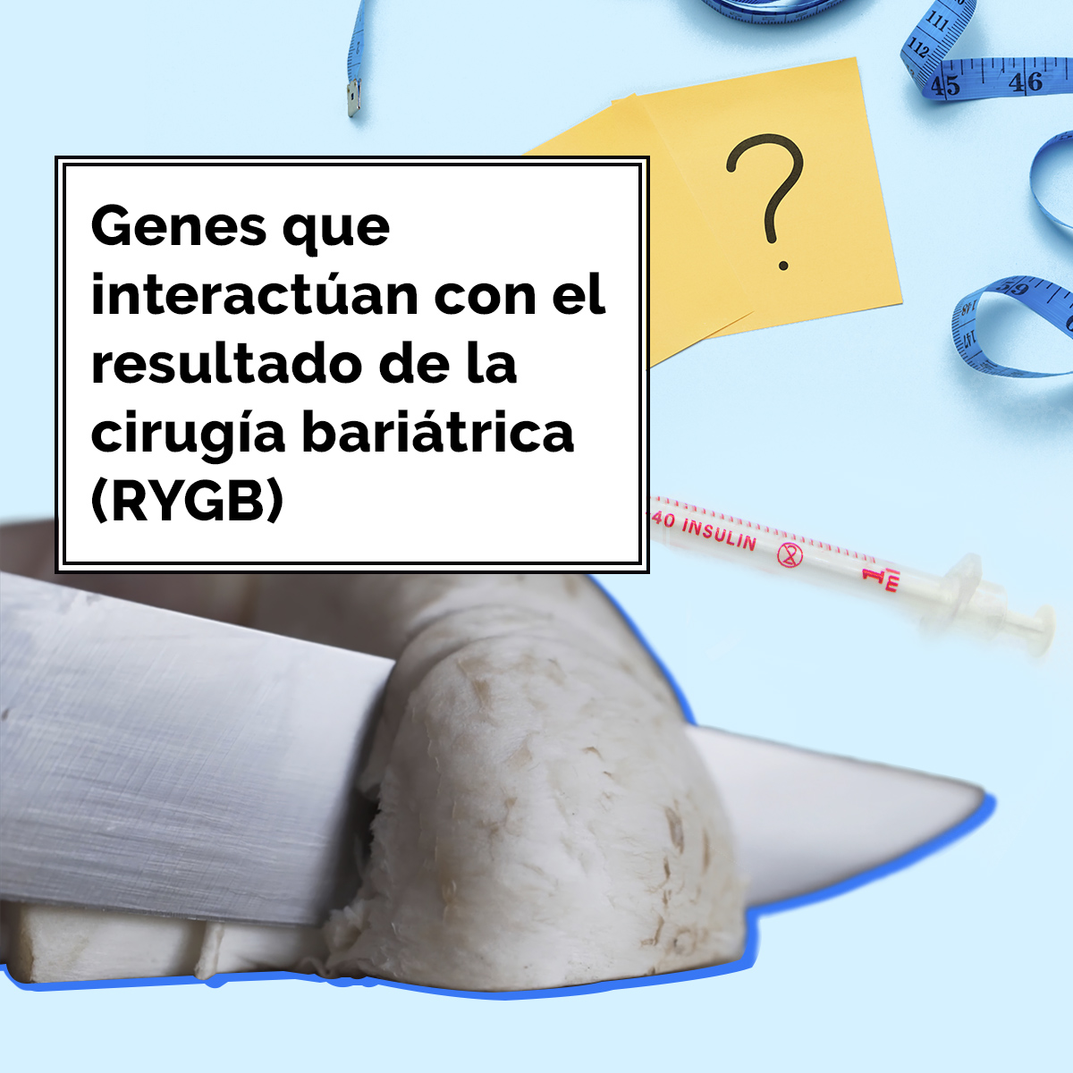 Introducción. Actualmente se disponen de varias alternativas terapéuticas para el tratamiento de la obesidad, como educación dietética, modificaciones del estilo de vida, ejercicio físico, Sin embargo, la pérdida de peso y el control glucémico son difícil de mantener a largo tiempo. Una alternativa de la cirugía bariatrica (CB) es el Bypass gástrico Roux en Y (RYGB) para tratar la obesidad severa (IMC≥40 kg/m2 o ≥35 kg/m2 con comorbilidades) y remisión de comorbilidades como DMT2, hipertensión y dislípidemias. No obstante, se ha reportado que del 20 al 30% de los pacientes no alcanzan pérdidas de peso satisfactorias después de la CB. Problemas de conducta, factores demográficos, técnicas quirúrgicas y polimorfismos genéticos han sido asociados con la pérdida de peso no satisfactoria. El objetivo del estudio fue analizar factores asociados con el resultado de la cirugía bariátrica incluyendo: conducta alimentaria y variaciones (polimorfismos) genéticas en ANKK1 y FTO (rs1800497, rs9939609, rs9930506, rs1421085 respectivamente), sobre los cambios en el peso, índice de masa (IMC) y total de peso perdido (TBWL) y variables metabólicas después de la cirugía bariatrica.