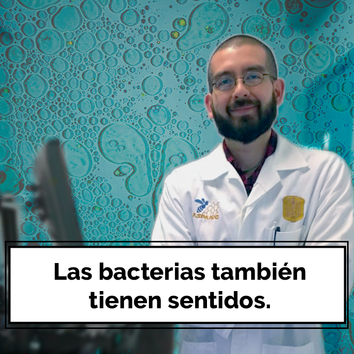 El componente de las células bacterias que se encarga de sentir el ambiente es una proteína que se le conoce como “cinasa sensora”, que generalmente se encuentra en la superficie de las bacterias y tiene dos secciones, una externa que es el “ojo” o “nariz” o la estructura que recibe el estímulo ambiental y una porción que está dentro de la célula que desencadena una respuesta. Y por otro lado, en el interior de la célula está el segundo componente, que se le llama “regulador de la respuesta”, y es una proteína que pone en marcha los procesos internos de la célula que le permite responder al estímulo que percibió la cinasa sensora. En términos generales, lo que ocurre dentro de las bacterias es que pone en marcha respuestas como producir moléculas que les permite sobrevivir ante estímulos dañinos en el ambiente, nadar en dirección de la comida o alejarse nadando de sustancias tóxicas (¡como los antibióticos!), poder alimentarse de cosas que normalmente no son alimento para ellas, nadar en dirección de la luz, entre otras. Pero quizá la función de este sistema tan curioso es el saber cuántas células hay, poder saber si hay nada más un tipo de bacterias o hay más, saber si está dentro de un humano o de un animal, saber si está en un tejido que le va a dar alimento o no, saber si el sistema inmune del humano la está atacando. Es decir, es un sistema esencial en las bacterias para su supervivencia.