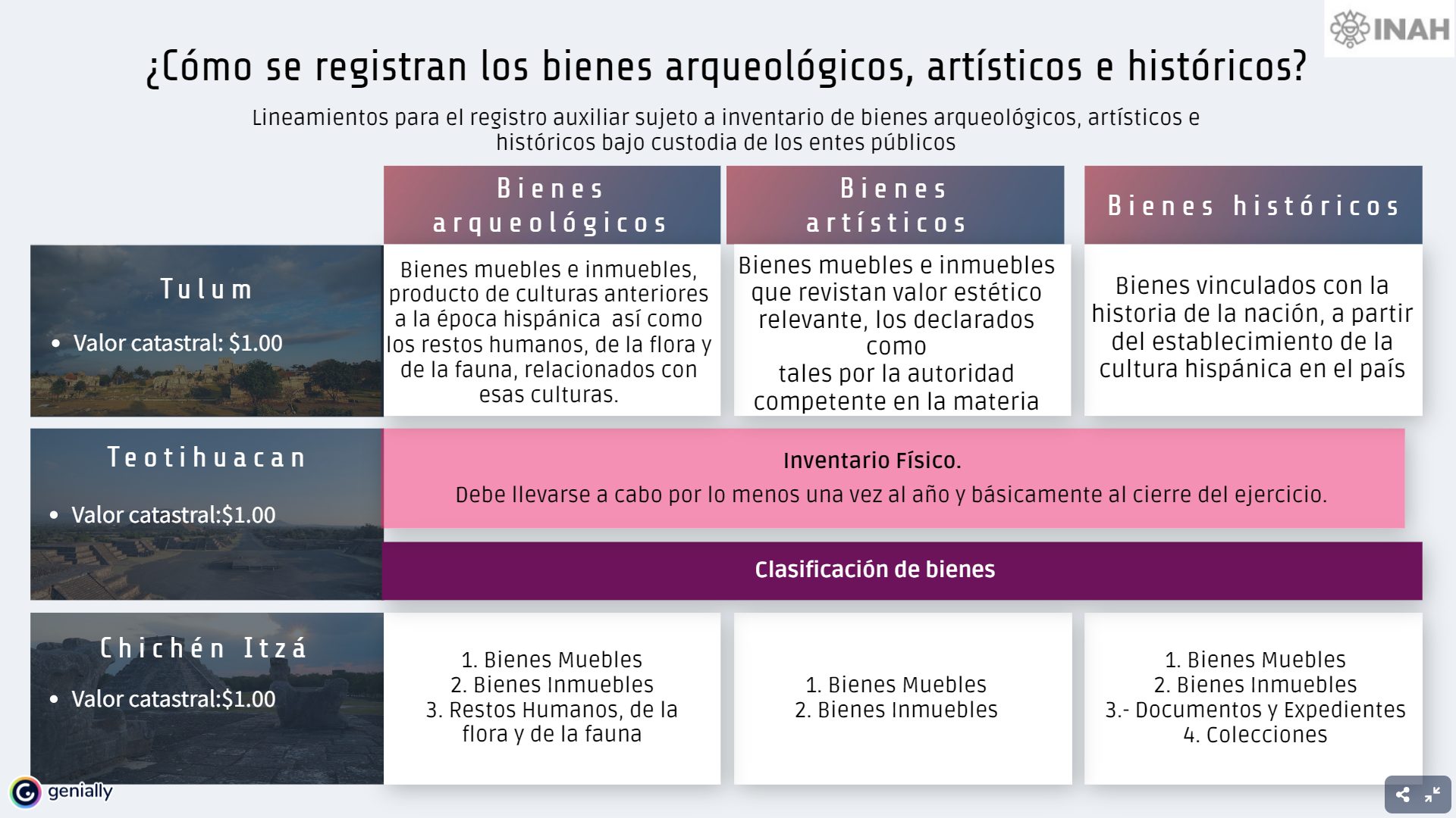 ¿Cómo se registran los bienes arqueológicos, artísticos e históricos?