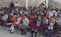 Lectura, intervenciones artísticas y la degustación de pan de muerto fueron algunas de las acciones que llevaron a cabo con pequeños catrines y catrinas que se reunieron en el patio escolar.