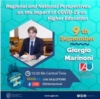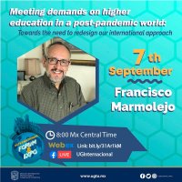 Guanajuato, Gto., a 3 de septiembre de 2020.- Del 7 al 11 de septiembre se realizará el Foro y Expo de Colaboración Académica Internacional UG 2020, que este año gira en torno al tema Meeting Demands on Higher Education in a Changing World (Satisfacer las demandas de la educación superior de un mundo en cambios continuos).
