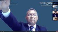 Previamente, el Presidente de la Junta Directiva, Mtro. Enrique Navarro González, explicó el proceso institucional que se llevó a cabo para designar al Dr. Gallegos Muñoz, y expresó su reconocimiento a la comunidad universitaria, al Consejo del Campus, y a la comisión especial que estuvo a cargo, por el alto compromiso manifestado, su participación y conducción en un esquema de actividades a distancia.