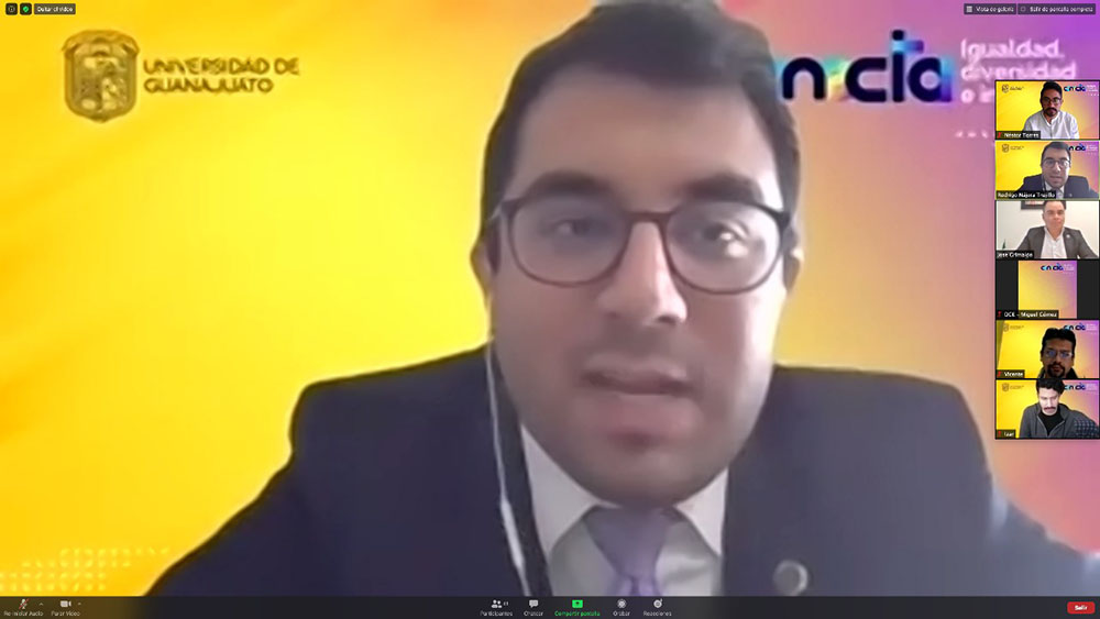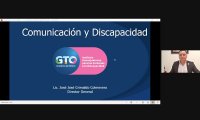 Guanajuato, Gto., a 09 de noviembre de 2020.- Como parte del programa institucional "Conecta", implementado desde la Dirección de Comunicación y Enlace (DCE) de la Universidad de Guanajuato (UG), se llevó a cabo la charla "Comunicación y Discapacidad", a cargo del Lic. José José Grimaldo Colmenero, Director General del Instituto Guanajuatense para Personas con Discapacidad (Ingudis).