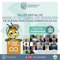 Guanajuato, Gto., a 19 de noviembre de 2020.- Con el lema "Los residuos limpios y separados, son bien valorados" se desarrolló el "Taller Virtual de Manejo Integral de Residuos, asociado a las Buenas Prácticas Ambientales 2020", organizado por la Dirección de Igualdad y Corresponsabilidad Social de la Universidad de Guanajuato (UG).