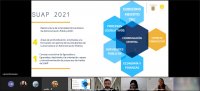 En ese sentido, correspondió a Ximena Gómez Farías Yépez, egresada y ex Coordinadora del SUAP, ofrecer el informe de actividades gestión 2019-2021, y pasar la estafeta a la alumna Eloísa Ramírez Mendiola, nueva Coordinadora de SUAP 2021-2022.