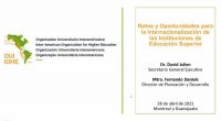Además, el Dr. David Julien, recordó el contexto que rodea a la Organización Universitaria Interamericana, una fundación con origen en Quebec, Canadá desde 1980, y la única organización de educación superior activamente presente a nivel interamericano, cuya misión es la de contribuir a la transformación de las IES para responder a sus contextos sociales y políticos, construyendo e innovando espacios comunes de cooperación interamericana en articulación con sus integrantes y con alianzas estratégicas.