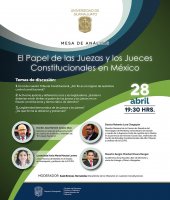 Por ello se abocó a organizar este encuentro con personas destacadas en el área de Derecho Constitucional quienes hablarán del papel que desempeñan las y los Jueces Constitucionales en el Estado Constitucional y Democrático de Derecho.