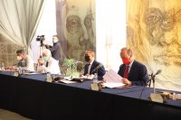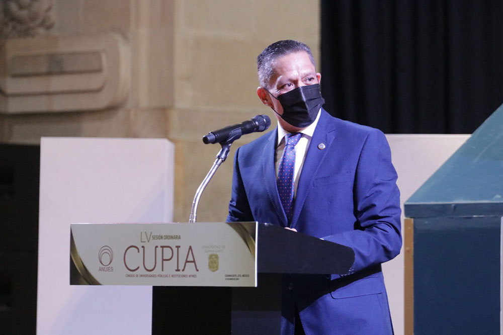 Guanajuato, Gto., a 25 de mayo de 2021.- Teniendo como sede la Universidad de Guanajuato (UG), se realizó con un formato híbrido la LV Sesión Ordinaria del Consejo de Universidades Públicas e Instituciones Afines (CUPIA), evento que marcó el inicio del retorno gradual a las actividades presenciales administrativas y de gestión en la Casa de Estudios.