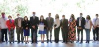 Guanajuato, Gto., 11 agosto de 2021.- En ceremonia presida por el Rector General de la Universidad de Guanajuato (UG), Dr. Luis Felipe Guerrero Agripino, por la Secretaria General de la Asociación Sindical de Personal Académico y Administrativo de la Universidad de Guanajuato (ASPAAUG), LDG. Claudia Lizbeth Reyes Montúfar; y por el Director General de Promoción y Desarrollo Laboral de la Subsecretaría del Trabajo y Previsión Social, Lic. José Miguel Fuentes Serrato, se llevó a cabo la entrega de reconocimientos y medallas a las y los participantes en los 8 proyectos ganadores del Galardón "Guanajuato, Premio al Mérito Laboral 2021", otorgado por el Gobierno del Estado de Guanajuato.