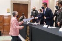 Guanajuato, Gto., a 28 de agosto de 2021.- El patio de la División de Derecho Política y Gobierno de la Universidad de Guanajuato (UG) fue testigo de la "Ceremonia de Aniversario de la Generación 1967-1971 de Abogados y Notarios Públicos", la Generación Oro y Plata con Identidad UG, que permitió celebrar a su comunidad egresada.