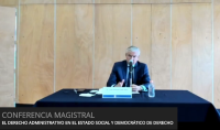 En su disertación, sostuvo que el Derecho Administrativo protege y defiende los derechos fundamentales de las personas, y parte de la centralidad de la dignidad humana y los derechos fundamentales que de ella se derivan, por lo que debe -en este tiempo que estamos, sobre todo- aumentar su compromiso en esa tarea de protección, defensa y promoción de los Derechos Humanos fundamentales.