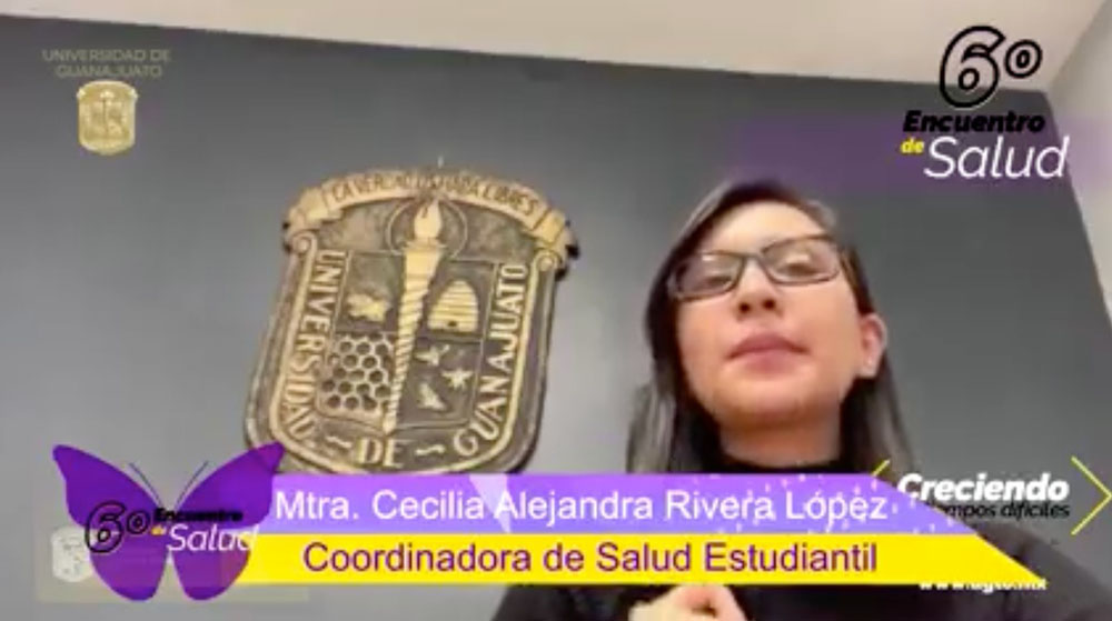 Guanajuato, Gto., a 29 de septiembre de 2021.- Comenzó en la Universidad de Guanajuato (UG) el Sexto Encuentro de Salud "Creciendo en tiempos difíciles", organizado por la Dirección de Desarrollo Estudiantil, que tiene como objetivo impulsar la resiliencia para promover la adaptación ante las pérdidas y cambios generados por la pandemia y la situación de vida en general, a través de la información, sensibilización, reflexión y concientización en temas relacionados al autocuidado de la salud.