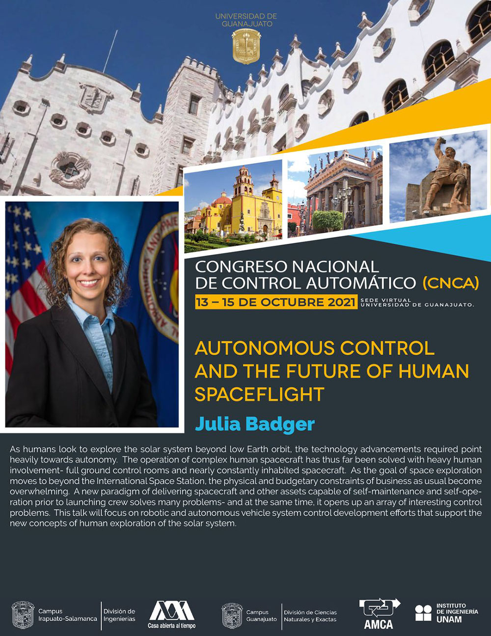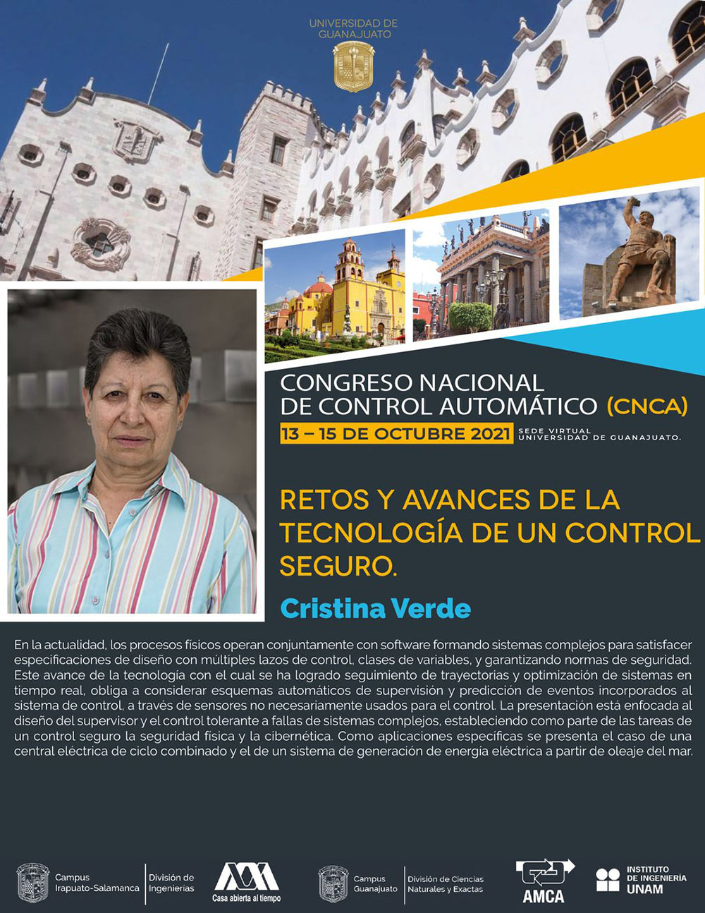 Entre otras y otros plenaristas destacan la participación de Sigurd Skogestad, de la Norwegian University of Science and Technology (Noruega); Cristina Verde del Instituto de Ingeniería de la Universidad Nacional Autónoma de México; Marcos Orchard de la Universidad de Chile; Martin Guay, de la Queen's University, (Canadá) y Julia Badger de la Administración Nacional de Aeronáutica y el Espacio, más conocida como la NASA (EE. UU).