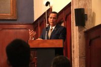 Asimismo, el Director del Departamento de Derecho, Dr. Leandro Eduardo Astrain Bañuelos, centró su participación en la importancia que tiene esta obra en la actualidad con una globalización del Derecho en orden jurídico interno, planteó que este libro permite la reflexión hacia un reto en el orden jurídico, con este nuevo orden en Derechos Humanos, por lo que consideró de manera positiva, que el autor se adelantó a su tiempo con esta obra.