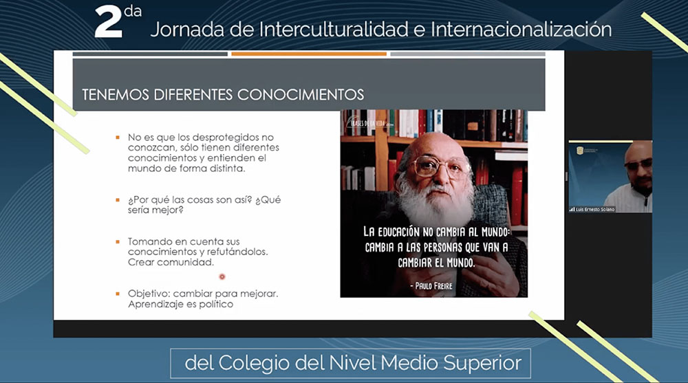 Guanajuato, Gto., a 25 de octubre de 2021.- Como parte de las acciones para seguir fomentando la internacionalización, el Colegio del Nivel Medio Superior (CNMS) realiza la segunda edición de las "Jornadas de Interculturalidad e Internacionalización (agosto-diciembre 2021)".
