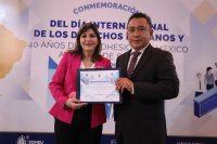 Por último, la ponencia "Conmemoración del Día Internacional de los Derechos Humanos y 40 Años de la Adhesión de México al Pacto De San José" impartida por el Dr. José Thompson J., Director ejecutivo y representante legal del Instituto Interamericano de Derechos Humanos y Catedrático en la Facultad de Derecho de la Universidad de Costa Rica y de los cursos especializados en Derechos Humanos.