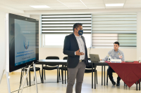 Posteriormente intervino en la reunión el Dr. Christian Gómez Solís; Coordinador de Apoyo a la Investigación y Posgrado del Campus León, y quien también se desempeña como profesor- investigador de la División de Ciencias e Ingenierías.