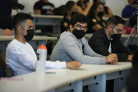 "Ahí radica la importancia de lo que hacemos en la Universidad, lo que se hace en el Campus León, lo que hacen ustedes. Porque estamos hablando de desarrollo científico aplicado a situaciones que tienen que ver con lo más elemental del ser humano, su salud", comentó a las y los estudiantes.