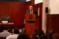 Previamente, el Director del Departamento de Derecho, Dr. Leandro Eduardo Astrain Bañuelos, expresó su confianza en la Universidad como una institución clave para construir un mejor porvenir, e insistió en que la realidad demanda la atención de sus problemáticas desde la academia, y en este caso específico, desde la ciencia del Derecho.