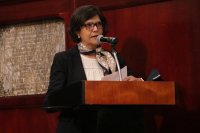 Correspondió a la académica de la UNAM, Dra. Xóchitl Padilla Sanabria, dar lectura al Laudatio del Dr. Sergio García Ramírez, a quien calificó como un "ejemplo de vocación, constancia, perseverancia y sapiencia".