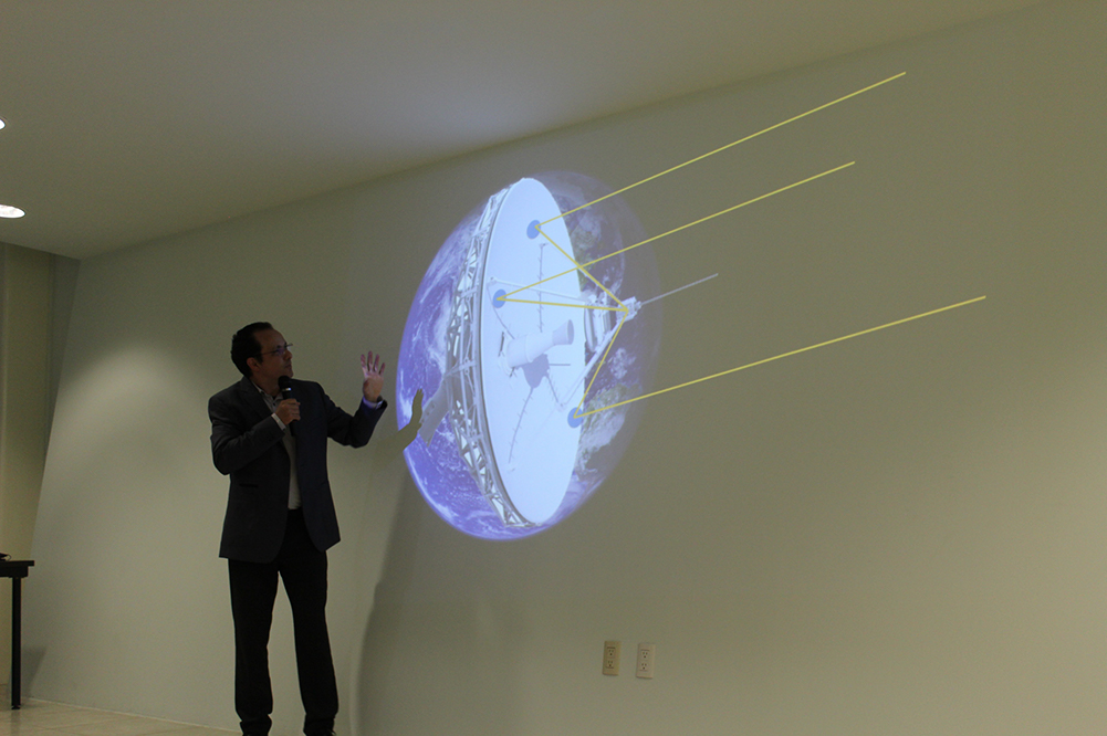 Expuso el trabajo, los desafíos y la colaboración de varios países con una red de telescopios distribuidos en los continentes, para lograr esta imagen del agujero negro en nuestra galaxia. México participó con un telescopio ubicado en Puebla, que se encuentra en la cima del Pico de Orizaba.