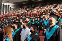 León, Gto., a 27 de junio de 2022.- La Escuela de Nivel Medio Superior (ENMS) de León de la Universidad de Guanajuato (UG) celebró a la generación 2019-2022, integrada por 755 estudiantes que culminaron sus estudios de Bachillerato General con formación en áreas como las Artes; Ciencias Naturales y Exactas; Ciencias Sociales y Humanidades; Económico Administrativo; e Ingenierías. Así como el egreso de 48 estudiantes del Bachillerato Bivalente.