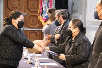 La ceremonia culminó con la entrega de reconocimientos para las y los alumnos egresados de la Licenciatura en Derecho y la Maestría en Sociedad y Patrimonio, así como la Maestría en Análisis Político.