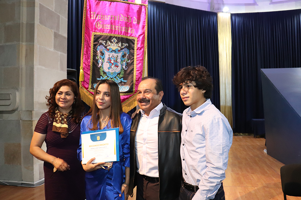 La Dra. Teresita de Jesús Rendón Huerta Barrera, Rectora del Campus Guanajuato de la UG, externó un cálido reconocimiento a padres y madres de familia por el respaldo que dieron a sus hijos e hijas para culminar sus estudios profesionales. Por fortuna, dijo, aún en nuestro país se tienen estas manifestaciones de solidaridad, cariño y orgullo.