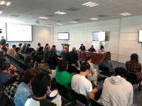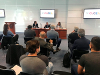 Las conferencias fueron presenciales en la Sala de Usos Múltiples del Múltiples del Centro Universitario de Ciencias Económico Administrativas (CUCEA) de la Universidad de Guadalajara.