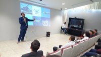 El primer ponente fue el Ing. Alejandro Arredondo, director del Clúster Aeroespacial del Bajío A.C., con la plática "Guanajuato hacia una era espacial", quien comentó que su compromiso es llevar a Guanajuato hacia una era espacial porque es el presente y el futuro de la entidad.