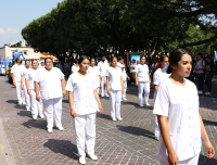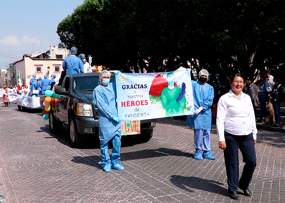 El contingente integrado por las y los enfermeros que hicieron labores de apoyo durante la contingencia por COVID 19, fueron vitoreados y aplaudidos por la gente, en una muestra de reconocimiento a su labor humana y altruista en el periodo de pandemia.
