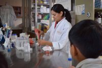 León, Gto., a 11 de febrero de 2020.- Con el fin de conmemorar el Día Internacional de la Mujer y la Niña en la Ciencia, investigadoras del Departamento de Ciencias Médicas de la Universidad de Guanajuato (UG) Campus León llevaron a cabo una jornada de prácticas científicas dirigida a niños y niñas de primaria.